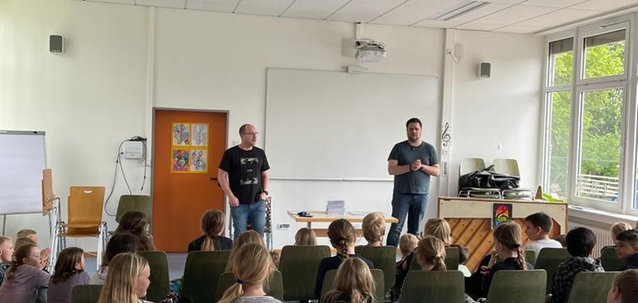 In diesem Jahr nahm unsere Grundschule zum ersten Mal seit ein paar Jahren wieder am Känguru-Wettbewerb für Mathematik teil. Am 16.03. fanden sich 63 teilnehmende Schüler:innen zum Knobeln mit den betreuenden Lehrern Herr Mosel und Frau Auster im Mehrzweckraum ein. Es galt 24 Knobelaufgaben in drei Schwierigkeitsstufen innerhalb der angegebenen 75 Minuten zu lösen. Im Anschluss hieß es Warten. Fast zwei Monate vergingen, bis die Ergebnisse ankamen. Am 09.05. trafen sich alle Teilnehmer wieder im Mehrzweckraum zur Verkündung der Ergebnisse. Alle Teilnehmer bekamen eine Urkunde von Herrn Mosel und ein Knobelspiel von Herrn Färber ausgehändigt. Zwei Schüler konnten sogar noch einen weiteren Preis abräumen. Ben Humpich (4c) schaffte den größten Känguru-Sprung der Schule mit 82,75 von 120 erreichten Punkten und bekam ein T-Shirt als Hauptpreis. Den größten Känguru-Sprung hat das Kind gemacht, welches die meisten aufeinanderfolgenden Aufgaben korrekt beantwortet hat. Zu guter Letzt wurde dann noch Kilian (3c) geehrt, welcher einen 3. Platz mit 83,75 Punkten erreicht hatte. Er bekam ein Spiel als Hauptpreis. Herr Färber und Herr Mosel dankten allen teilnehmenden Kindern und freuen sich auf eine rege Teilnahme im nächsten Jahr.