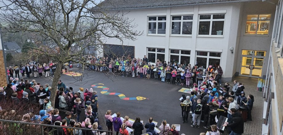 Zum Abschluss der Adventszeit fand am letzten Schultag vor den Ferien das große Weihnachtssingen auf dem Place de Serre in Katzenelnbogen statt. Viele Omas, Opas, Mamas und Papas waren gekommen, um den Liedern der Kinder zu lauschen. Gemeinsam wurde gesungen, gelächelt und der besondere Moment genossen.